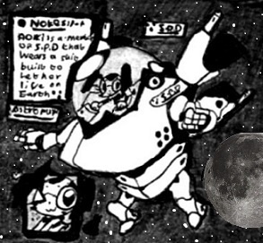 Aoki Kyanoto キャノートー青木 (aka AstroPup アストロパップ) is a 10 year-old puppy-like alien and part-time S.P.D agent from a planet where her kind don't breathe the air of Earth, so she wears a special armored spacesuit with wrist-mounted laser-guns, shoulder missile-pods and powerful-thrusters. When she's not wearing her suit, she wears a special collar that lets her hang out with Jamiko and his friends, she's a sweet, caring girl who loves everyone, even licking their cheeks like puppies do.