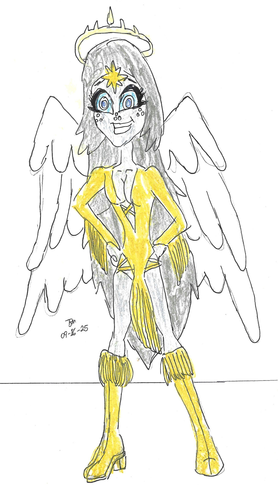 This is a request by Mothrabro for Drew's House of Horrors 2025 Jam for Emily the Seraphim Angel of Hazbin Hotel costumed Dawnstar of DC Comics Legion of Super-Heroes