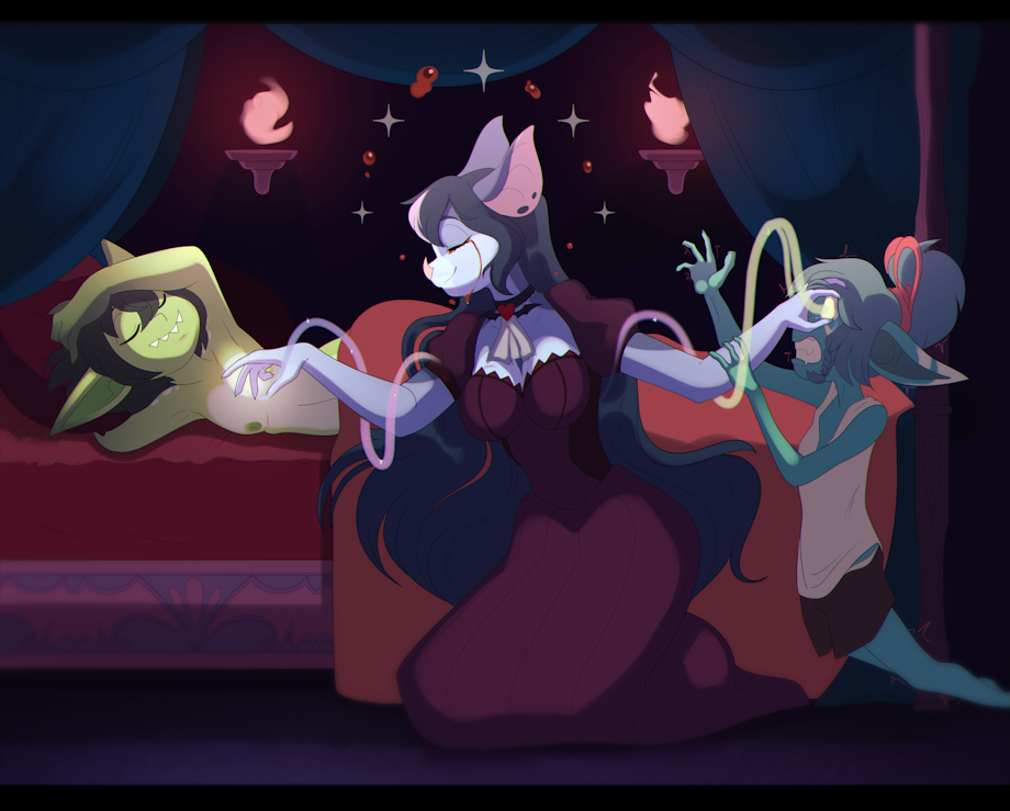 Cadence always hated the Final wedding vow. The concept of death being able to inevitably destroy all love is something she wished could never happen. Spending years researching ways to give others immortality never payed off in finding anything ethical. The only way she could keep Clement alive without turning him into a monster is problematic. Goblins have high birth rates, nobody would notice one going missing every few years right? You could assume they died in an accident like most goblins do. Clement can never find out she is killing his kin to extend his life. Cadence typically does her best to stomp out any suspicion in the disappearances. Find out too much and you might be her next sacrifice.