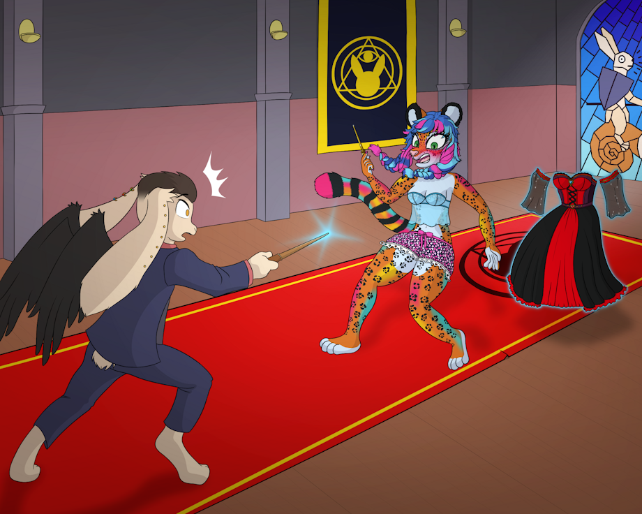 My brain starte thinking again, about how this would be a tournamnet. I imagined a team of mages vs witches, and you send out one at a time, and swap for the next when they are defeated. Same rules as before; first to drop their wand loses. But for some reason, every opponent to WattaBunny seem to give up unexpectedly. It just keeps happening.