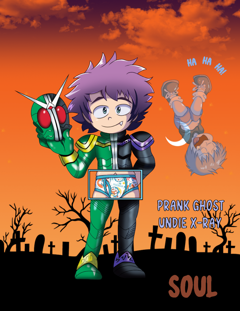 There's a nice line up of kids he's gotta prank this year. So, why not give them all a nice little window to their humiliation? They've got cool costumes on but this ghost is gonna make sure his selected targets are seen in most of their costumes... and their underwear. Because that's just funny.