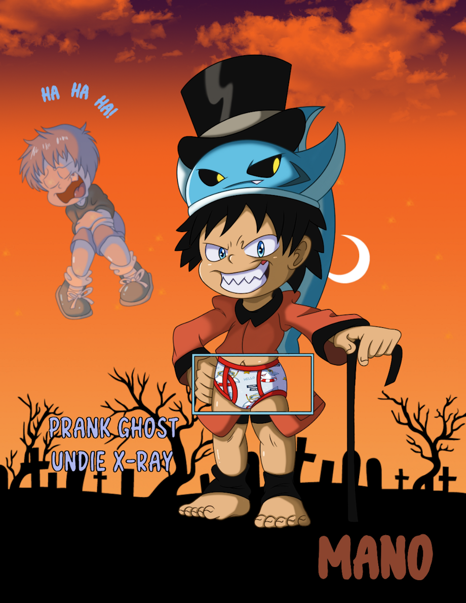 There's a nice line up of kids he's gotta prank this year. So, why not give them all a nice little window to their humiliation? They've got cool costumes on but this ghost is gonna make sure his selected targets are seen in most of their costumes... and their underwear. Because that's just funny.