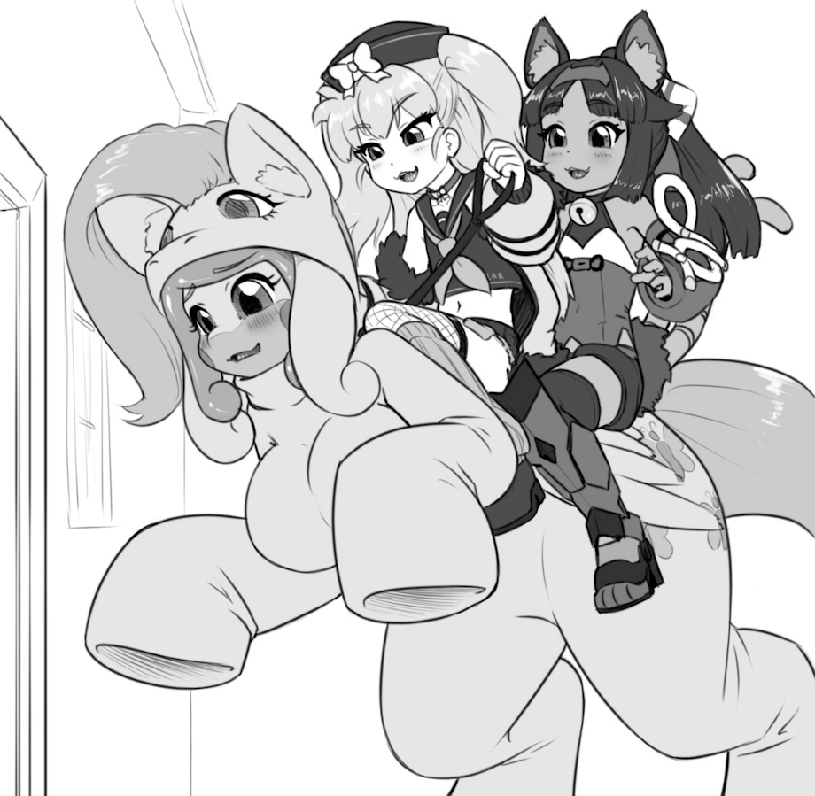 Bachetilda returns! Still a great look for her, cute tummy and hat bow hahah. Andrea looks good as Nekomata as well. That Gabby Fltutershy costume is so goofy, hahahah. With legs like that, I can see how she wound up in this position however! A useful Halloween mount!