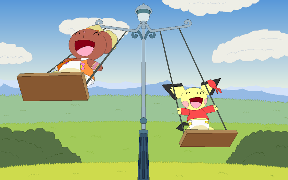 Dahlia & Bolty having fun playing on the lamppost swing in the park
