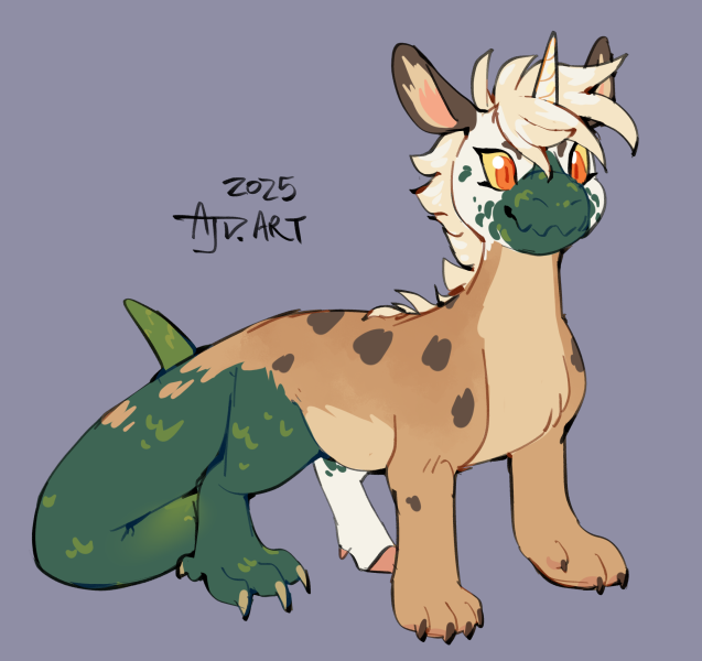 Casimir the Chimera! A wild mix of unicorn, dragon, and lion. They actually do not have a world to call home yet, but I'm softly testing out the idea they might be in my pony town Cloverly. Believe it or not Casi is a bit of a shy one and nervous about meeting others due to their strange anatomy. But where does she live then? She must live with others to get support for being a hermit. So we'll have to explore more of this character and hammer out the details.