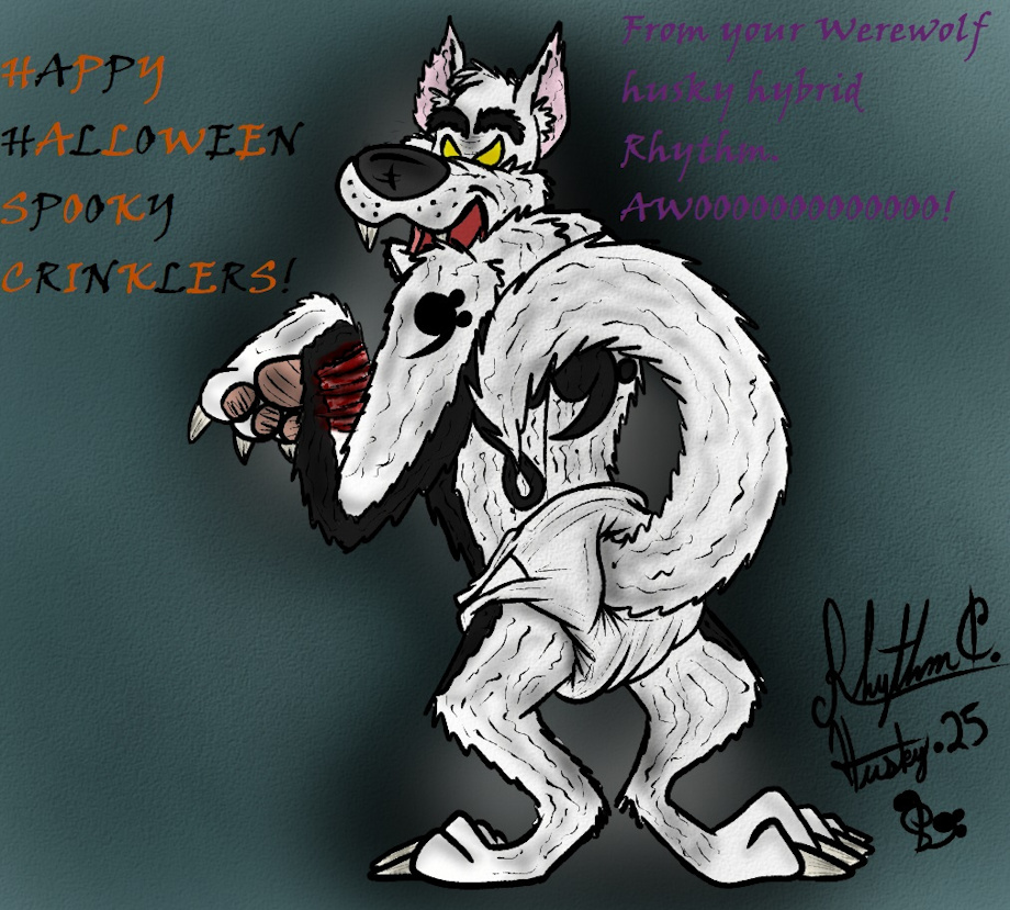Welp it happen, I gotten scratched but a werewolf and now i'm a werehuskywolf hybrid in diapers, a little early halloween drawing.