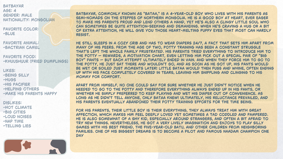 I actually really love writing these cute little stories about my OC, so I'm glad you liked the character description. There will definitely be more of them in the future! >wO