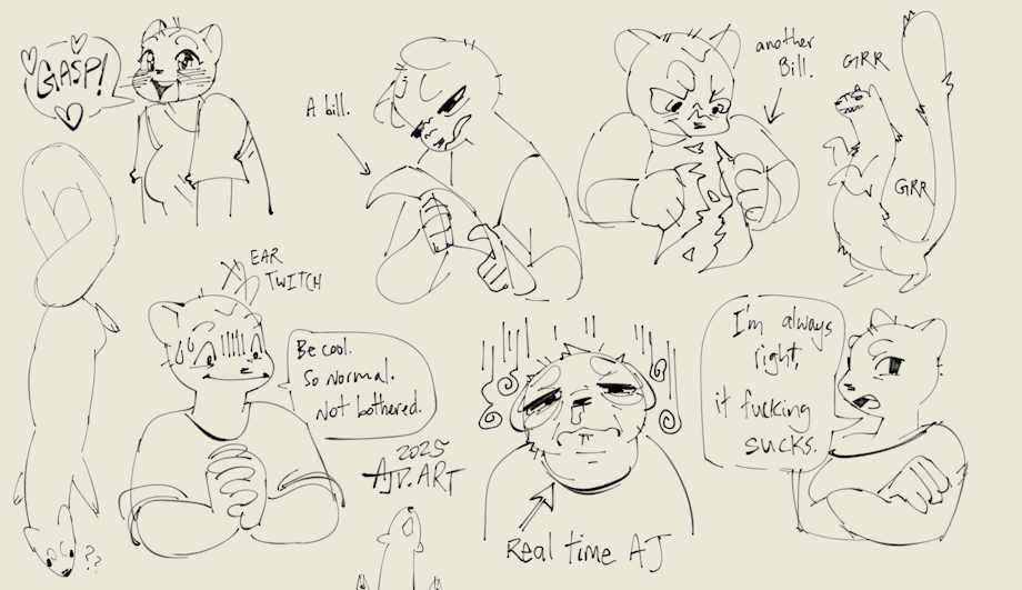 Just needed to have some doodle time... But I couldn't think of anything to draw in that moment. So we go to the comfort zone, AJ FERRET!!! Haha, all very real feelings and expressions I believe myself to have.