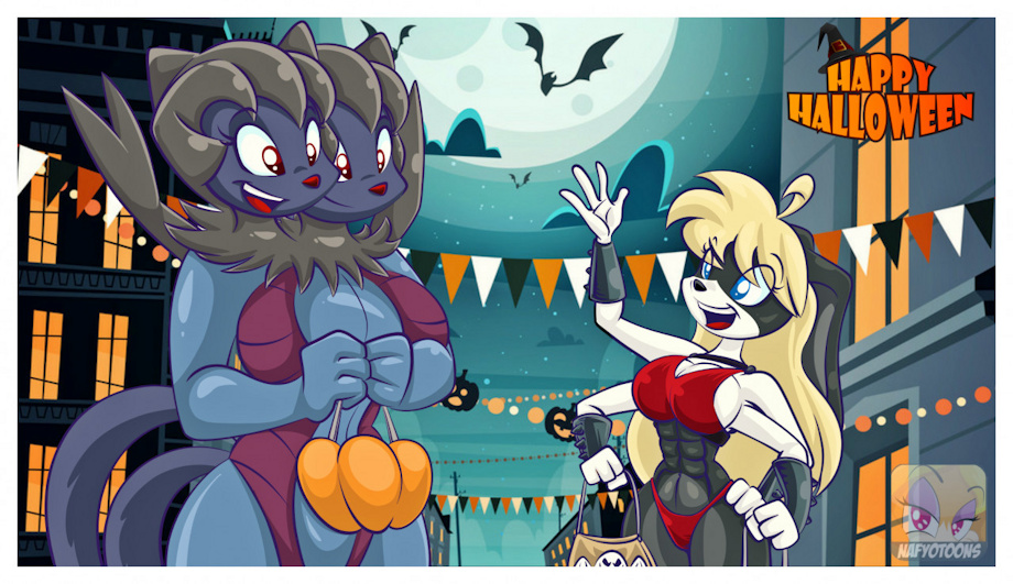 Spooky month is here, and Felicia and Ruby are ready! Art by Nafyo: