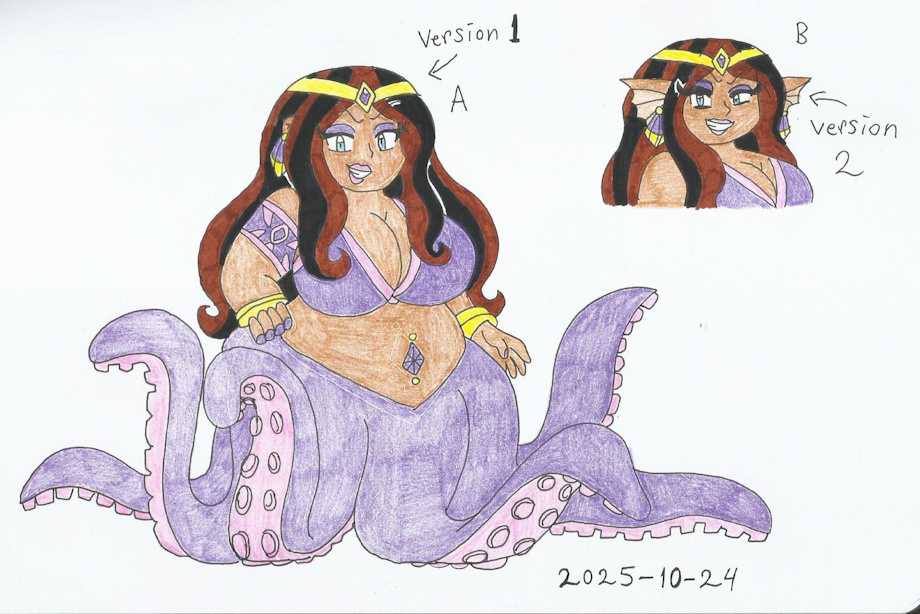 Sorry about the eyes I drew on the version B. I gotta be careful to use markers and draw with sketch pencils first. I gotta practice drawing the tentacles too.