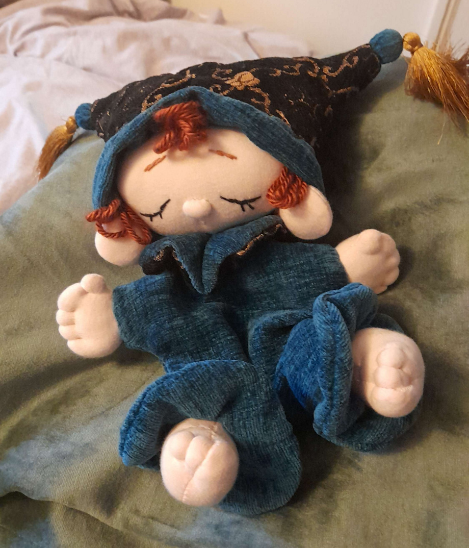 my newest completed doll. Had to take a bit of a step back from drawing every day, and making a plush is always so refreshing :3