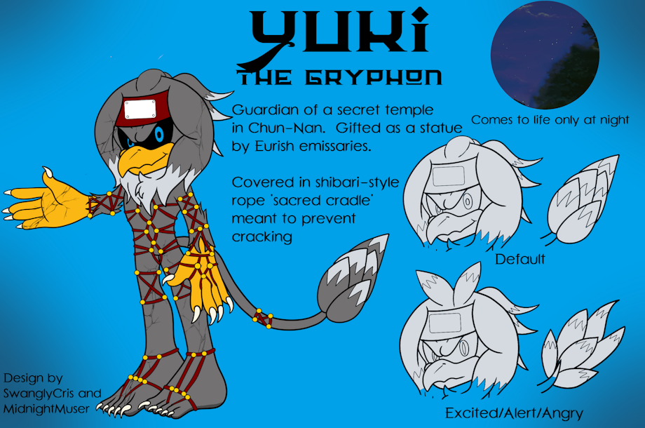 Gifted as a statue to a temple in Chun-Nan, it was unknown at the time that the strange gryphon was actually a gargoyle--a creature of the night, made immovable by daylight. While normally creatures of mischief, Yuki was moved by the temple caretakers in their respect for their land and temple, as well as his body, with how they want to save it from cracking further.