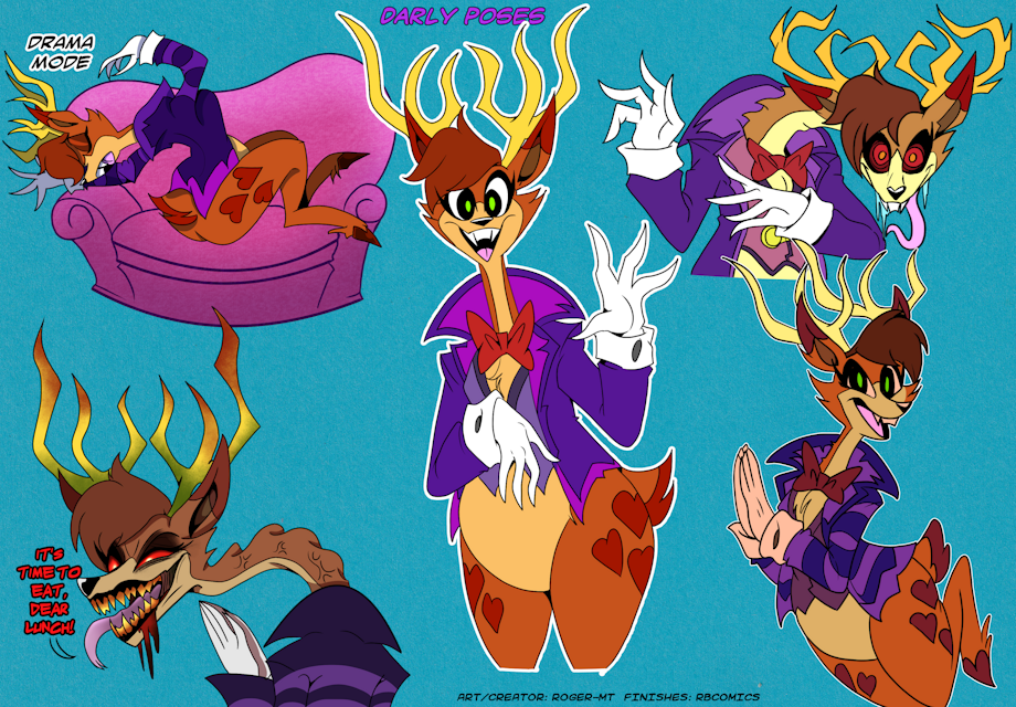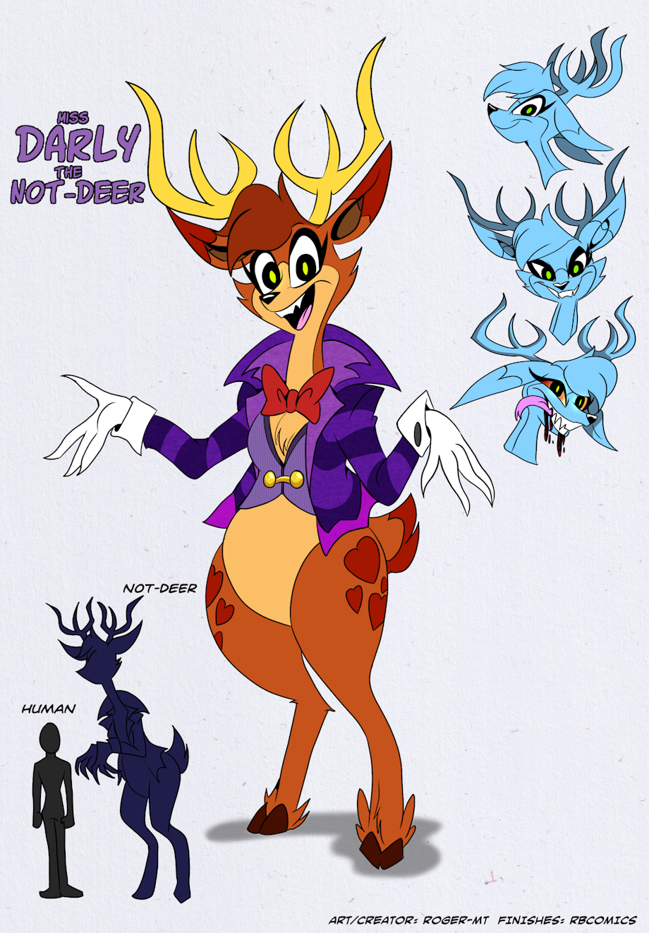 Personality: Elegant and intellectually refined, Darly is feminine, cheerful, and playfully charming. Yet behind her friendly façade lies a cunning, vicious trickster—an aggressive predator who hides her hunger behind good manners and a sweet smile. She’s eccentric, animated, and polite enough to deceive her prey before tearing into them. Think “psychopath with antlers and a taste for high fashion.”