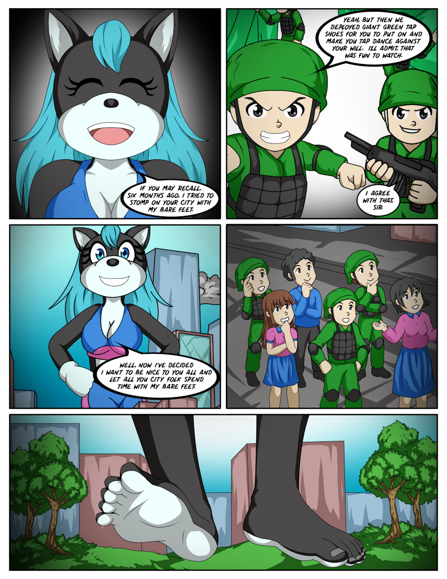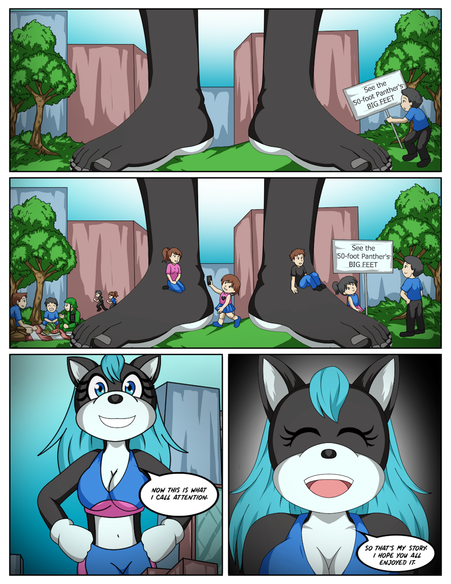 Here's a 4-page comic adapatation of a story "Return of the 50-Foot Panther" where Zafiro returns to a familiar city to show that she changed her giantess ways.