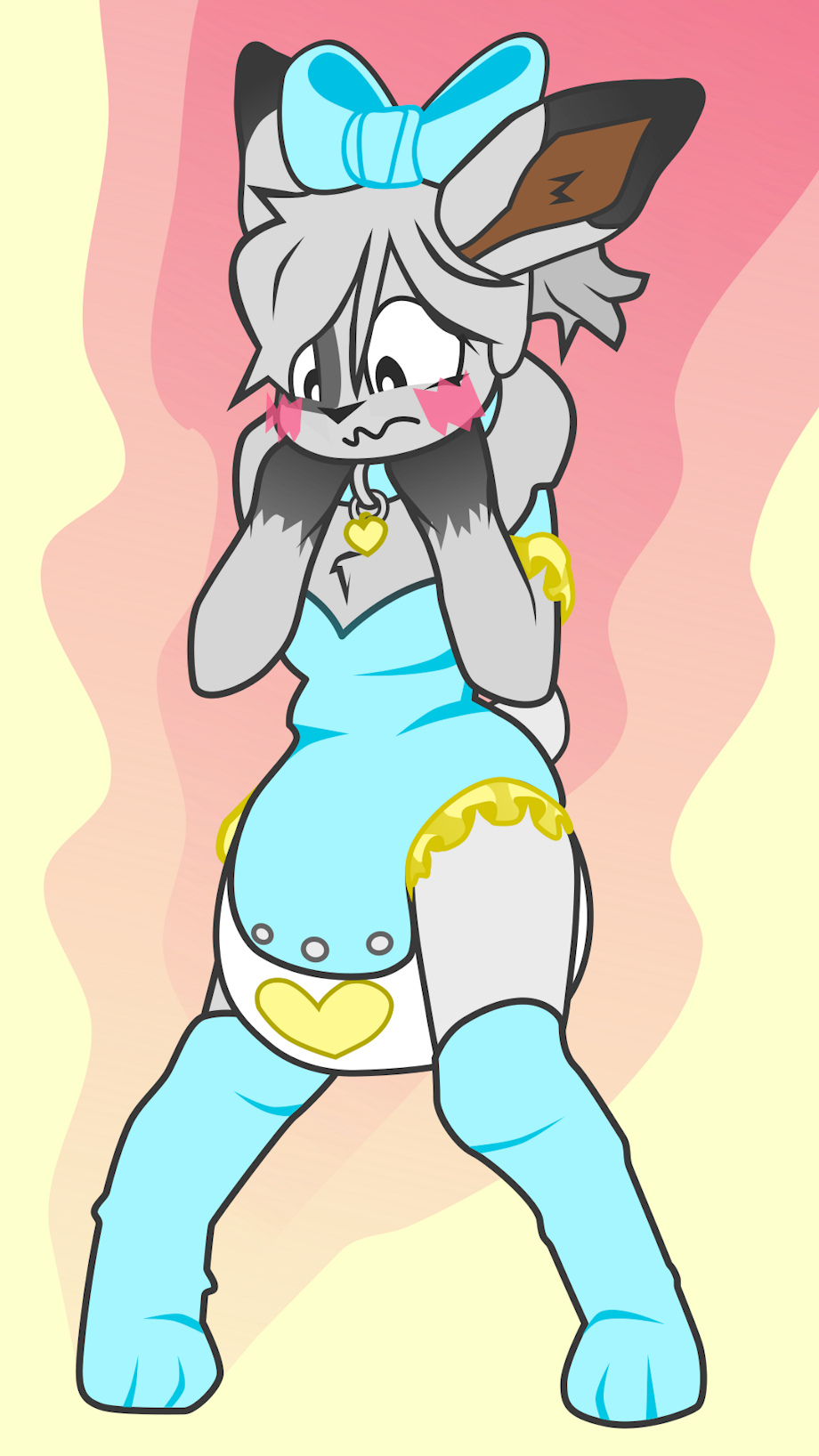 An example of a coloured commission! This little bunny just got a cute collar cliped around their fluffy neck, and now their cheeks can't help but burn red