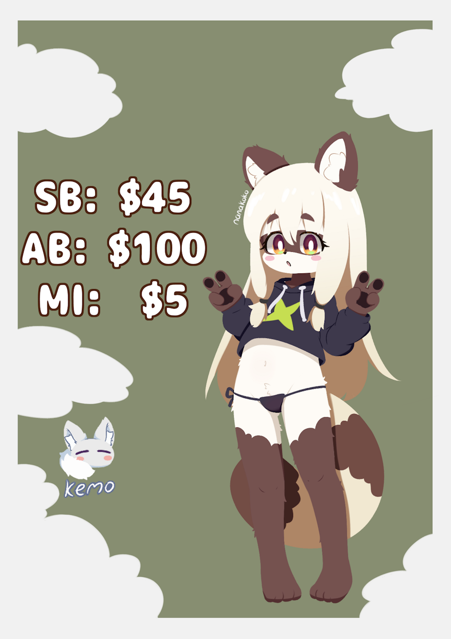 AB contains the .CSP and .PSD file, including a nude alt, and you may also request a full render commission with 20% off!