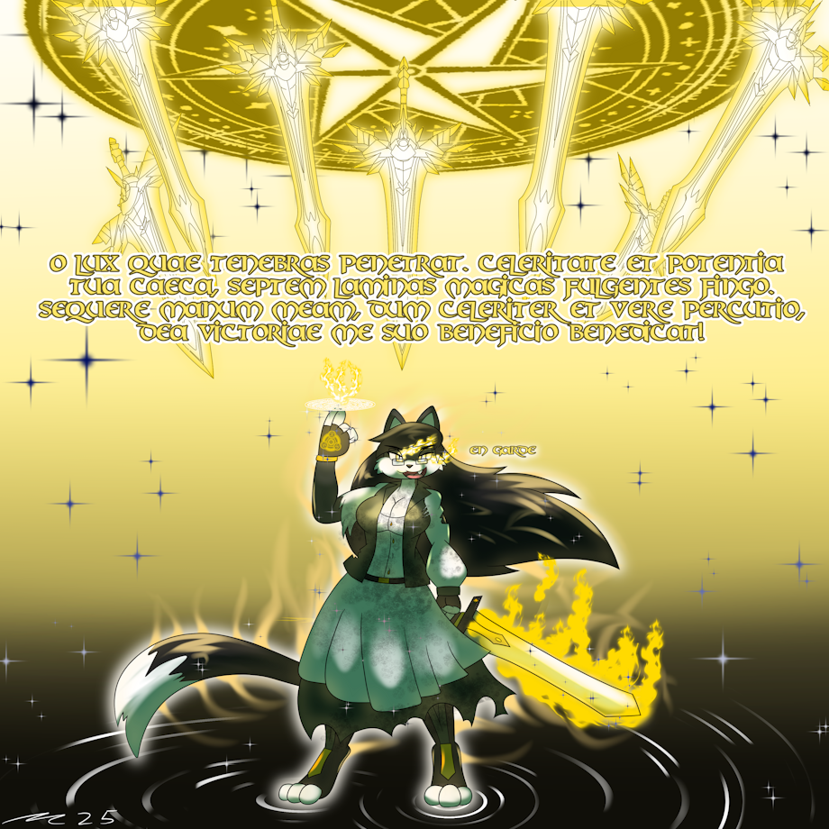 Salem sometimes finds herself pushed to a corner in combat. What could be the situation? A deadly fight against a ferocious beast? Some rival caster or warrior? Or maybe a friendly sparring match that got a little out of hand. Whatever the reason, this magic swordsman lives for the thrill of battle, and any excuse to start going all out gets her blood pumping!