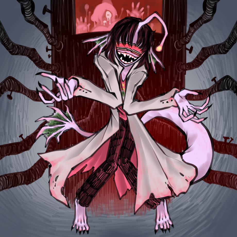 Madison can't help but let out a maniacal laugh, being stronger than him, after activating his demonic machine that will forcibly merge two beings, wanting to obtain a unique being and a weapon, wanting to add to his already created collection of abominations.