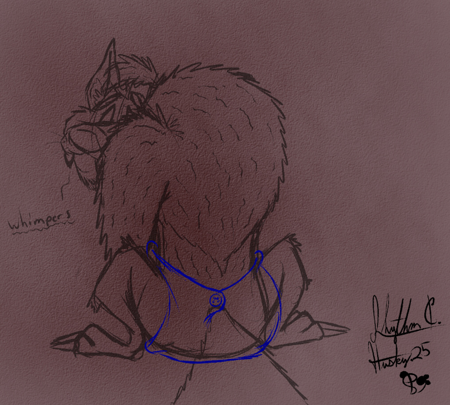 Here is a werewolf getting a good scalding after he peed all over the house and is put in a diaper till he's fully housebroken.