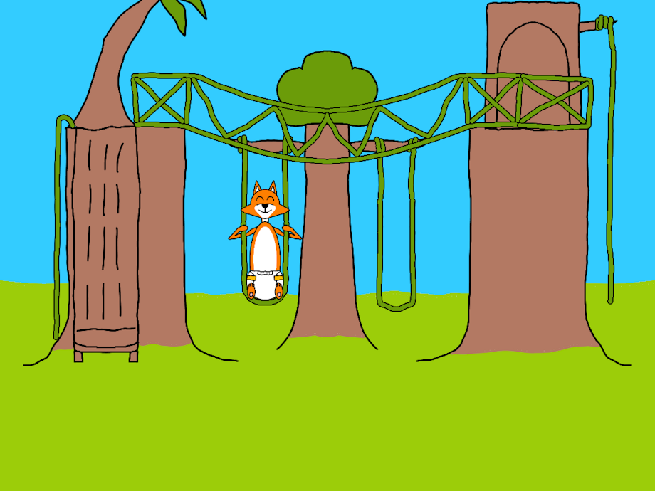 In Athena's garden there is a place for her son to play on, its a jungle gym that is made of trees she's magically grown herself. On the left is a net climbing wall made from vines and a wooden slide from one of the trees, and a palm tree on top for shade, On the right is an area that one can climb up and down to through a tunnel (the exit on the bottom is on the right side of the tree) and a vine fire pole. connecting the two trees is a vine bridge with vine barriers put on the trees for safety. Behind that is another tree with vine swings where Nayrm is currently.