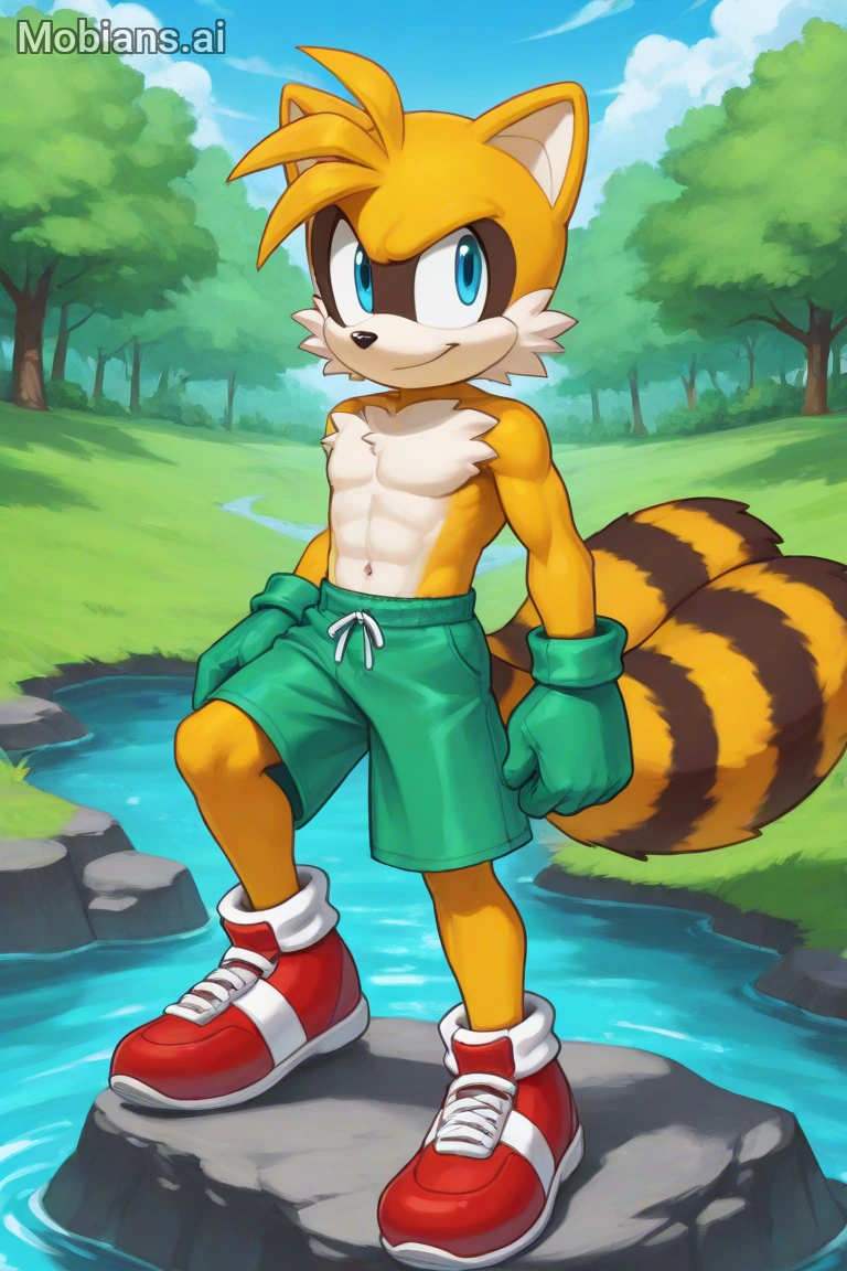 Second is the son of Tails and Marine, a two-tailed raccoon! He may be a bit adventurous, like his mum. His name is Matthew, or Matt.