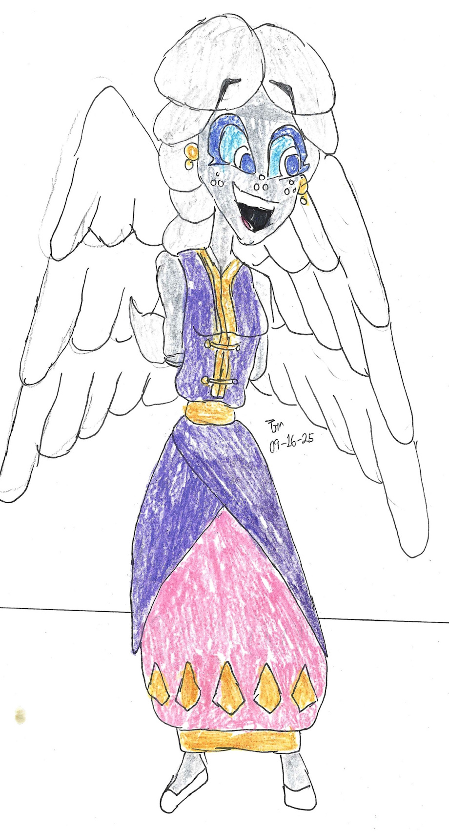 for Drew's House of Horrors 2025 Jam for Emily the Seraphim Angel of Hazbin Hotel costumed as Princess Petunia from Veggie Tales episode "Duke and the Great Pie War."