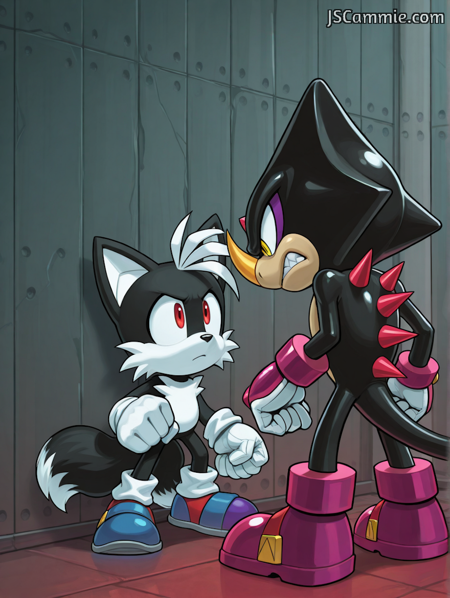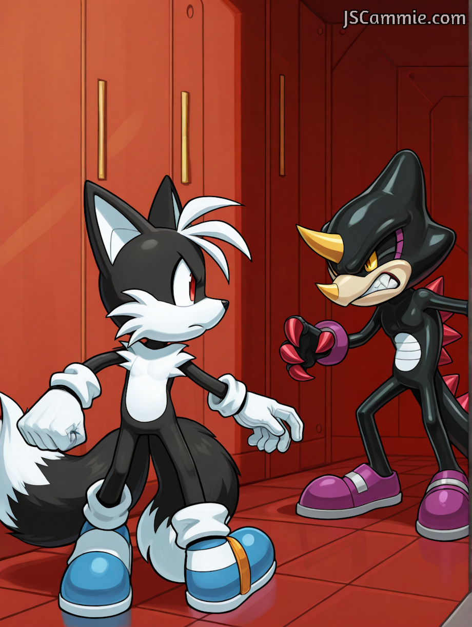 Ch. 25 (first image) - In the new timeline, Heather is more fearful than before. Due to timeline changes brought about by Fera, Mephiles was created along with Heather! He took his form from Bucky's shadow, so Mephiles approaches Fera in rat form. He convinces Heather to join with him despite Copter's protests.