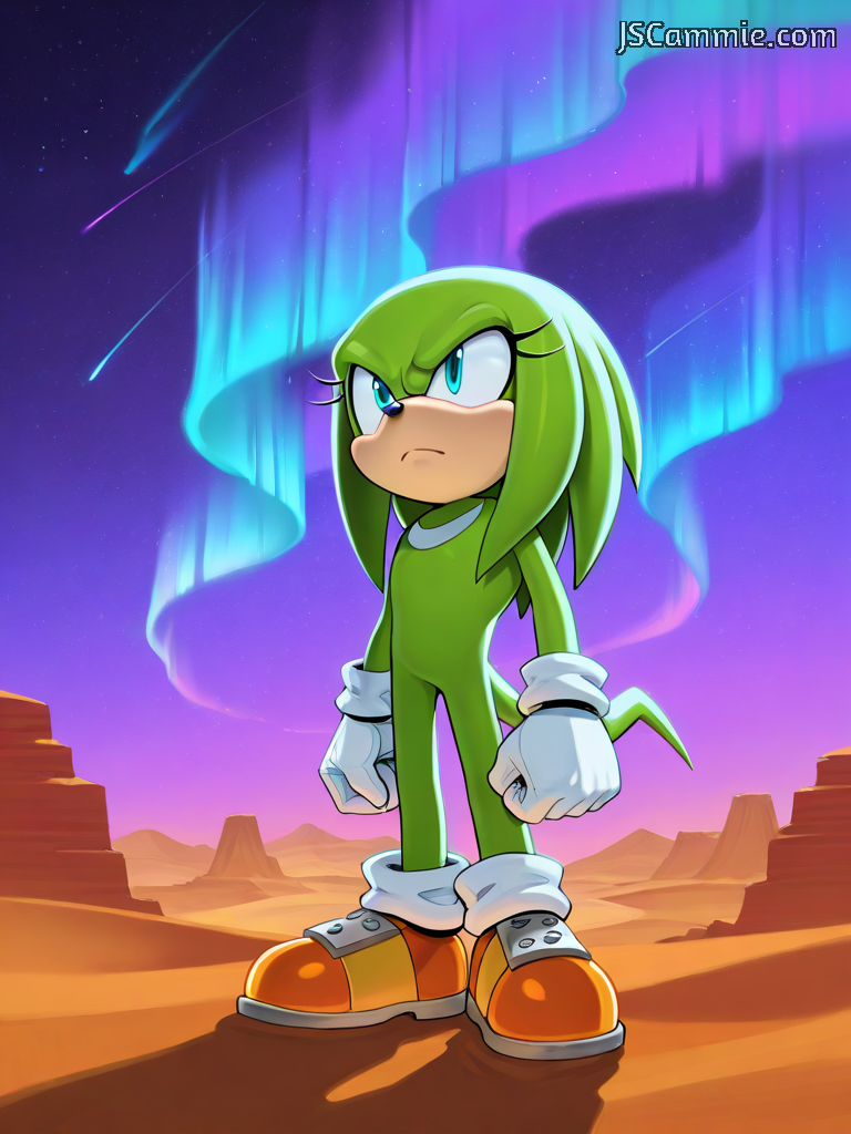 Ch. 23 (two images) - Ultimately, Mephiles succeeds in his plans. Sonic is killed, Solaris is formed, and everyone ends up in a stage called "End Of The World." While Sonic's friends seek the Chaos Emeralds to revive him, our cast of characters hunt down the Time Stones to break free of "End Of The World." Punchy searches Eggman Nega's base in Dusty Desert, while Guard returns to Outpost Fiery Red, which is now infested with arachnid Lospides.