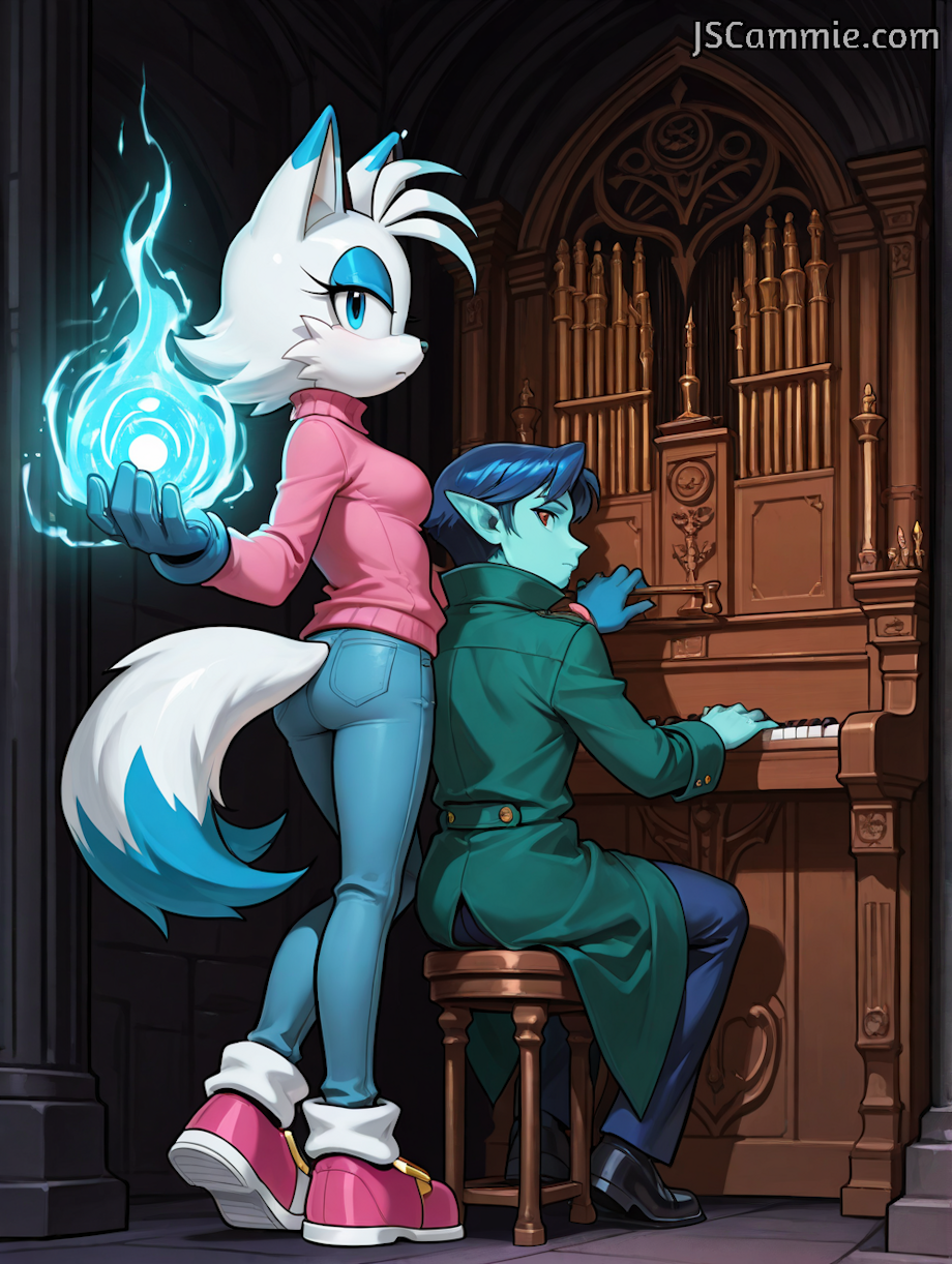 Ch. 25 (first image) - In the new timeline, Heather is more fearful than before. Due to timeline changes brought about by Fera, Mephiles was created along with Heather! He took his form from Bucky's shadow, so Mephiles approaches Fera in rat form. He convinces Heather to join with him despite Copter's protests.