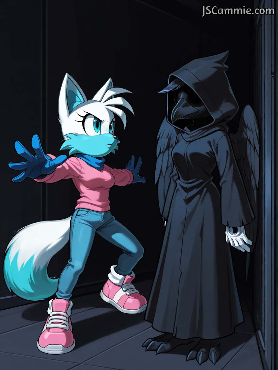 Ch. 25 (first image) - In the new timeline, Heather is more fearful than before. Due to timeline changes brought about by Fera, Mephiles was created along with Heather! He took his form from Bucky's shadow, so Mephiles approaches Fera in rat form. He convinces Heather to join with him despite Copter's protests.