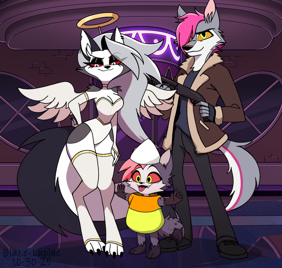 He laughed. “Yeah, well, turns out when your kid dresses like a walking sugar triangle and your hellhound girlfriend goes full Martha Stewart meets Addams Family, it kind of rubs off on you.”