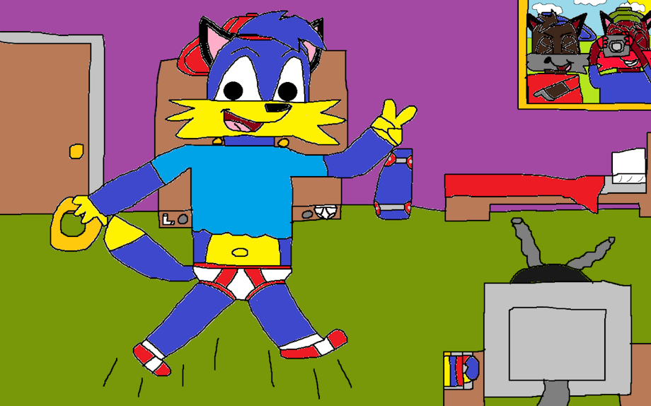 This is Alex in his underwear in his room feeling cool and striking the super cool sonic the hedghog pose he even has a ring to add to the coolness