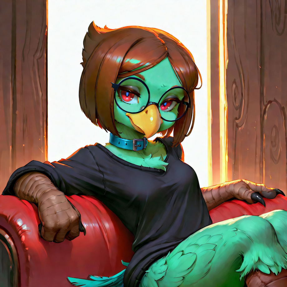 masterpiece, high quality, detailed fur, high detail, 4k, detailed background (1girl, closeup, face focus, solo, black clothes, shirt:1.4) <lora:(1) FenrisXL Lighting:1> <lora:(1) Mjölnir (SDXL Lighting):1> <lora:photorealistic anthro 2:1> furry (female:anthro:slender:athletic:chocobo:1.4), (short hair, parted bangs, brown hair:1.4), (glasses:1.4), (green body, green feathers:1.7), (yellow beak:1.3), (red eyes, black pupils:1.3), (digitigrade:1.2), (brown forearms, brown hands, brown feet, brown shins, brown ankles, scuted legs, talons, scuted arms:1.4), (small breasts:1.3), (light blue collar:1.3), (tail feathers:1.3), (clothes:2) Negative prompt: bloodshot eyes, arms behind back, hands behind back, blurry, blurry background, bad anatomy, bad hands, three hands, three legs, bad arms, missing legs, missing arms, poorly drawn face, bad face, fused face, cloned face, worst face, three crus, extra crus, fused crus, worst feet, three feet, fused feet, fused thigh, three thigh, fused thigh, extra thigh, worst thigh, missing fingers, extra fingers, ugly fingers, long fingers, horn, realistic photo, extra eyes, huge eyes, 2girl, amputation, disconnected limbs, worst quality, normal quality, low quality, low res, blurry, text, watermark, logo, banner, extra digits, cropped, jpeg artifacts, signature, username, error, sketch ,duplicate, ugly, monochrome, horror, geometry, mutation, disgusting, jpeg artifacts, , NEGATIVE_HANDS ac_neg2 p0rnXL-neg DeepNegative_xl_v1 BeyondV3-neg, (nipples, nude, nudity:2) (erect nipples:2) (topless:2) Steps: 30, Sampler: DDIM, Schedule type: SGM Uniform, CFG scale: 5, Seed: 80112579, Size: 512x512, Model hash: 171e88f0da, Model: yiffymix_v62Noobxl, Denoising strength: 0.25, ADetailer model 2nd: face_yolov8s.pt, ADetailer confidence 2nd: 0.3, ADetailer dilate erode 2nd: 4, ADetailer mask blur 2nd: 4, ADetailer denoising strength 2nd: 0.4, ADetailer inpaint only masked 2nd: True, ADetailer inpaint padding 2nd: 32, ADetailer version: 25.3.0, Hires upscale: 1.5, Hires steps: 20, Hires upscaler: 4xUltrasharp_4xUltrasharpV10.pth, Lora hashes: "(1) FenrisXL Lighting: c49df8024095, (1) Mjölnir (SDXL Lighting): 368d428918ac, photorealistic anthro 2: bed53d4c8b68", TI: "NEGATIVE_HANDS, ac_neg2, p0rnXL-neg, DeepNegative_xl_v1, NEGATIVE_HANDS, ac_neg2, p0rnXL-neg, DeepNegative_xl_v1", Version: f2.0.1v1.10.1-previous-224-g90019688 |