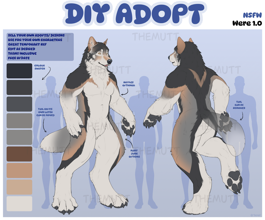 ---------------------------------------What's in it for you? ---------------------------------------- -Use it to sell your own adoptables -Test colours and designs for your OCs -Use as a temporary (or permanent) reference sheet with low entry cost -You can change the base, add hair, piercings, etc. Do whatever you would like to it! Just make sure to mention that it was modified please -Best for wolves and wolf like characters