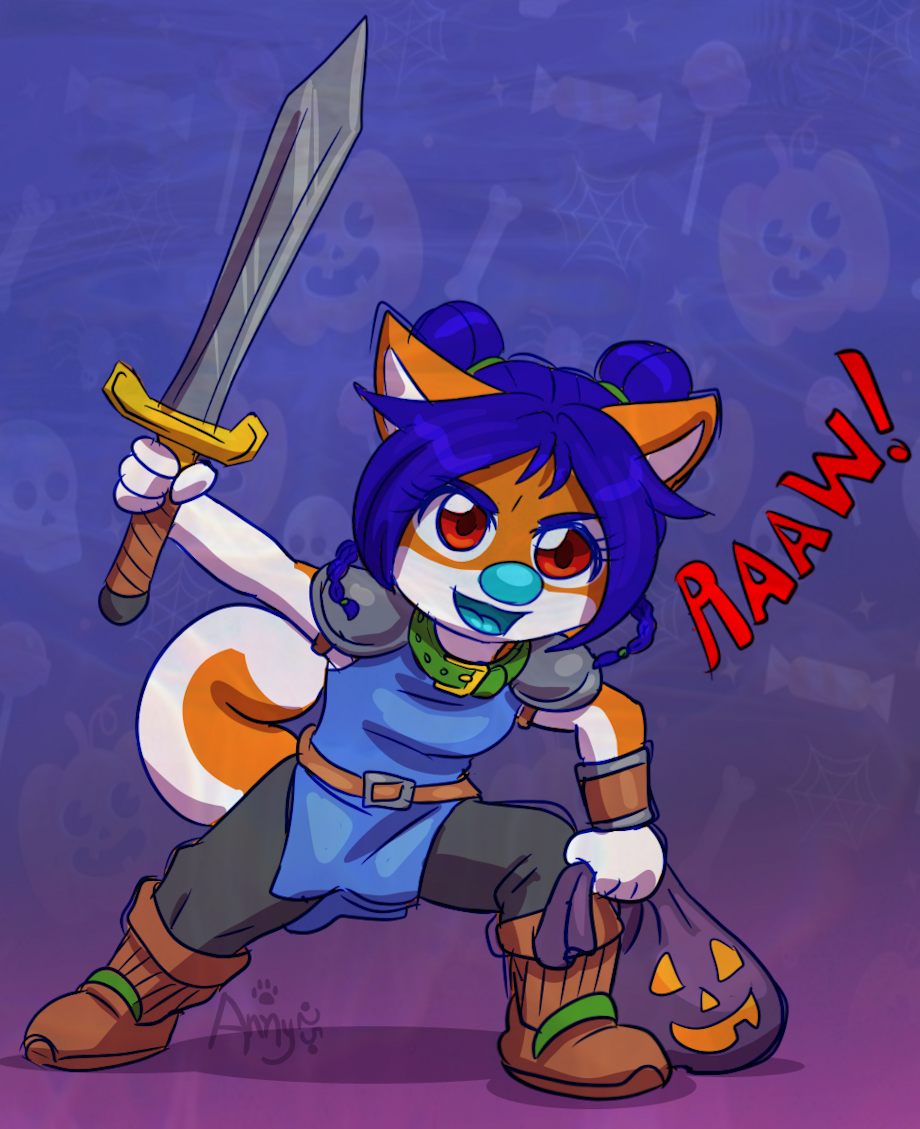 Ty! She lives for every time she can run around in her "adventurers" costume
