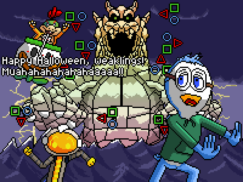 Just as I touched the ? Sphere, a creepy head in shape of bowser rose from the sea but then Junior and Kamek appeared. Lastly used the transformation magic to let the already scary head grow to a much more horrifying golem.