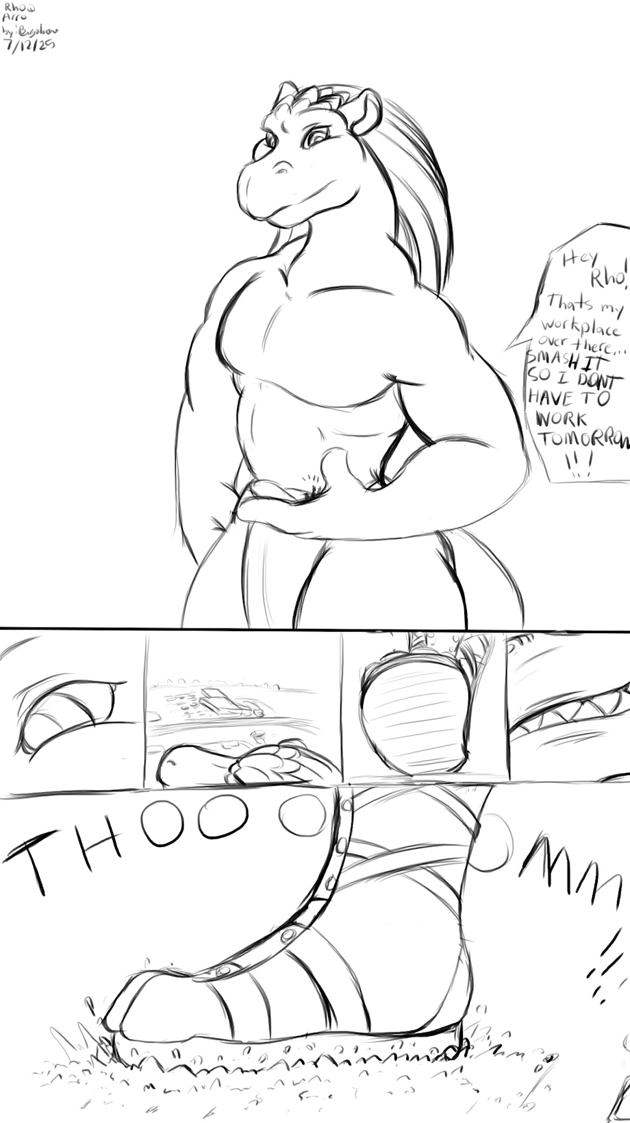 Rho taking a few of his friends on a little walk through town, when one of them points him in the direction of their work place, and wants to see it crushed flat. so, being the kind sport he is, he accepts and stomps it in on go XD.