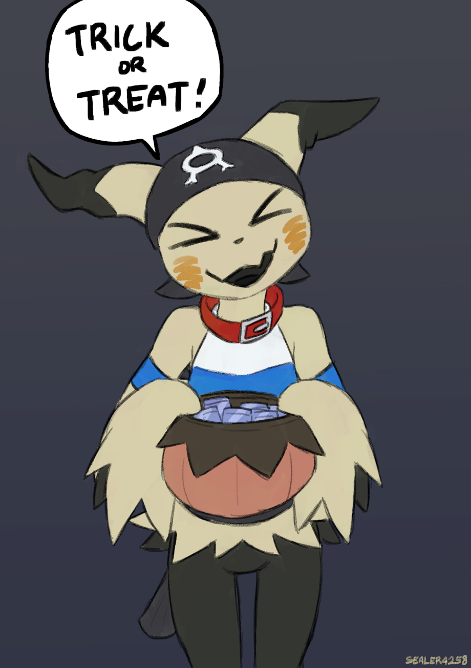 Mimi Mimikyu wishing you a Spooky Halloween! She is dressed as a Pikachu Pirate this year, yarr!