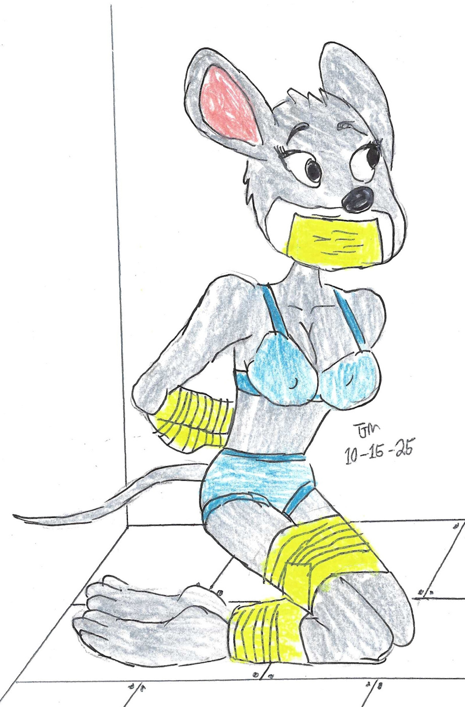 We have Thea Stilton of Geronimo Stilton and The Thea Sisters books being tied up and gagged in her underwear.