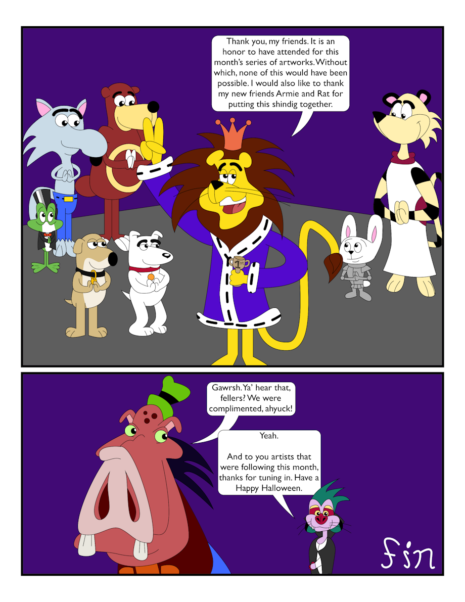 Note: Linus is copyright of Post Consumer Brands. Hoppity, Waldo and Fillmore are copyright of Jay Ward Productions and WildBrain. Brian and Vinny are copyright of Seth MacFarlane and 20th Television Animation, a division of The Walt Disney Company. Crusader and Rags are copyright of 20th Television. Armie and Rat are characters I created through inspiration, based on their fathers Timon and Pumbaa’s monster forms in The Lion King’s Timon & Pumbaa S02.E11A - “Monster Massachusetts”.