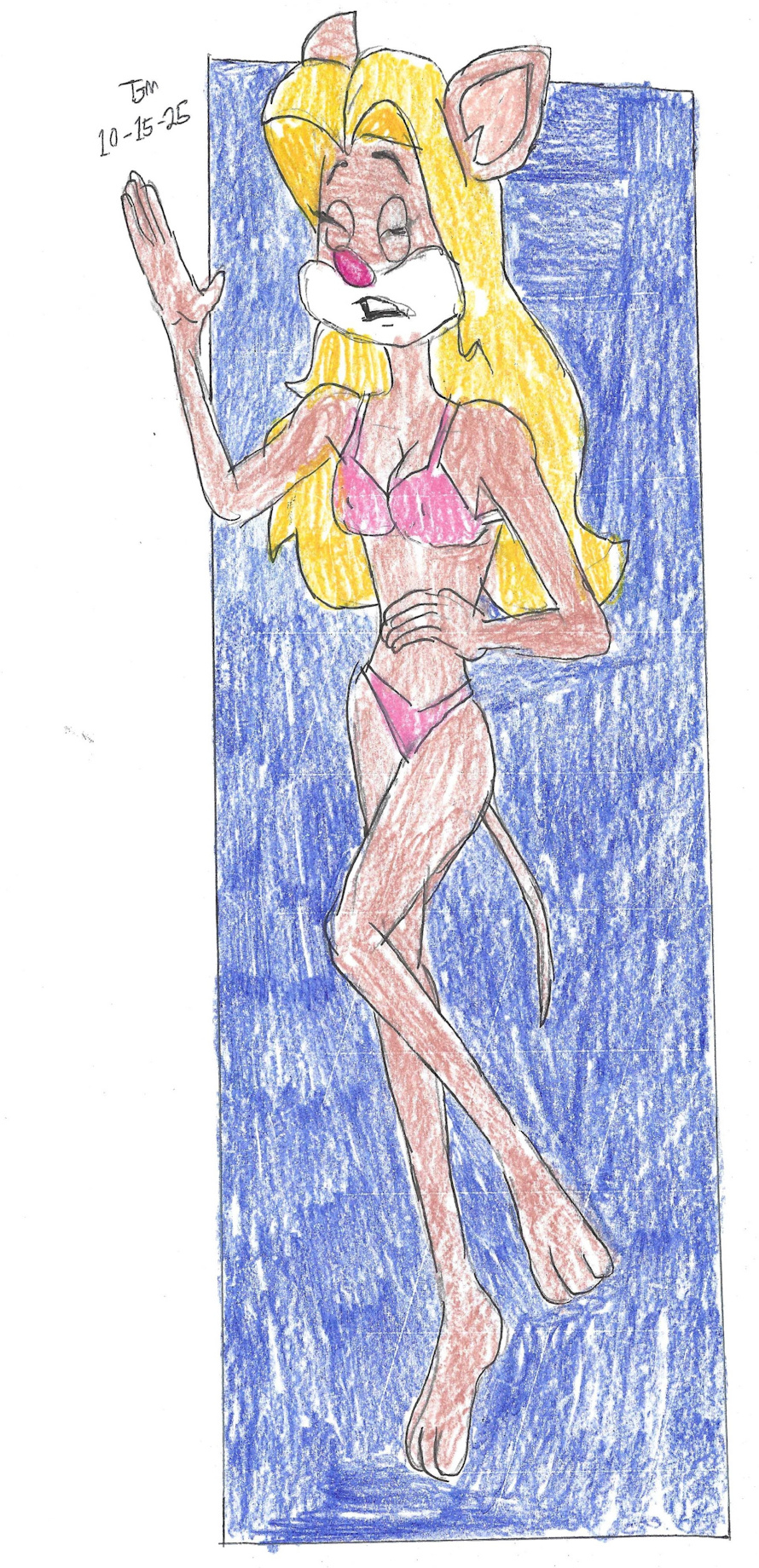 This is a request by Nayzor for cartoon cuties in bikinis sawing wood on the beach. We have also have a request by Gabkat1991 Miss Deli Slice of Geronimo Stilton franchise napping on the dunes in a pink bikini and blue towel.