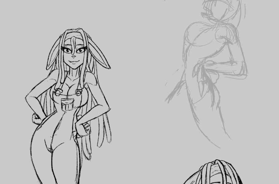 WIP snapshot's of someone's bunny gal OC during a recent stream.