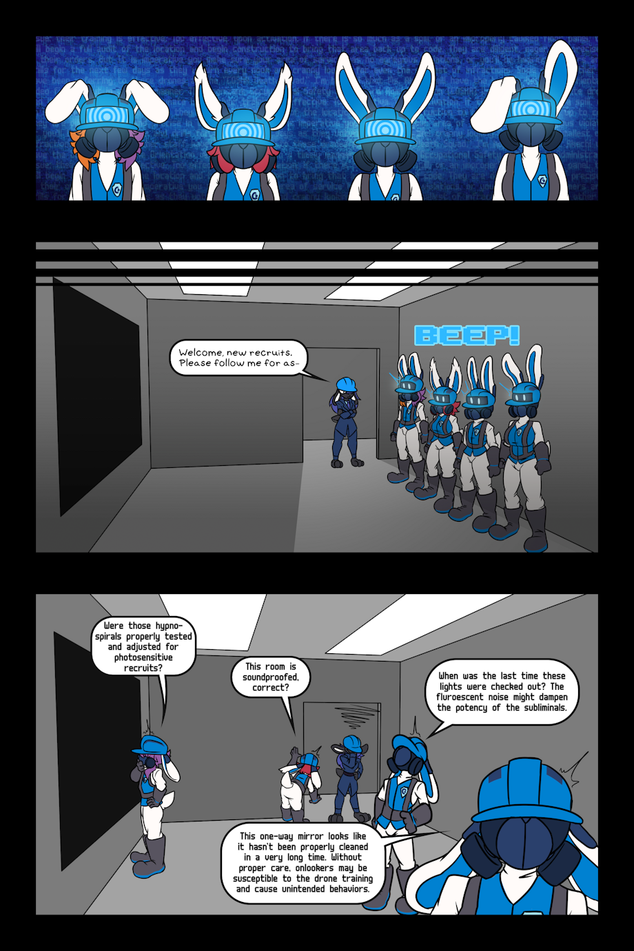 ----- Uh oh. It looks like In her effort to make the safest drones in the network, she's inadvertently made them TOO safety oriented. and now they won't rest until their room is up to code! The hypnosis is too strong. now they're inspecting and making sure their hypnotic chambers are safe and possessing enough fire extinguishers and safety rails. the floor has a 3.5 inch incline! Someone could get hurt while being brainwashed!