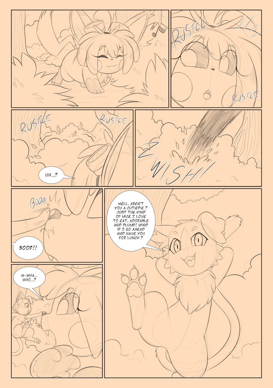 a little self-indulging comic I drew involving Puck from Re:Zero. I really love the little guy, so I went and drew a simple scene where he meets the chu and well...shenanigans happen u//u This was in early access for a while on my patreon server.