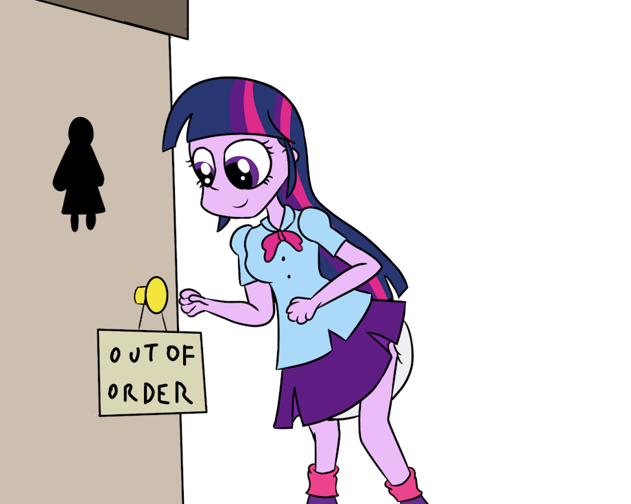 Twilight Sparkle really has to go to the toilet but all the toilets are out of order and occupied.