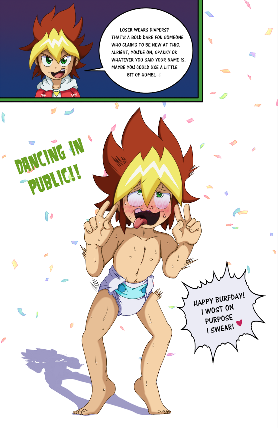 Yuga Ohdo has lost to a newbie at dueling and suffering the fate of an extremely bold dare. Perhaps he should have thought through why they'd be so bold as to suggest it having never dueled before.
