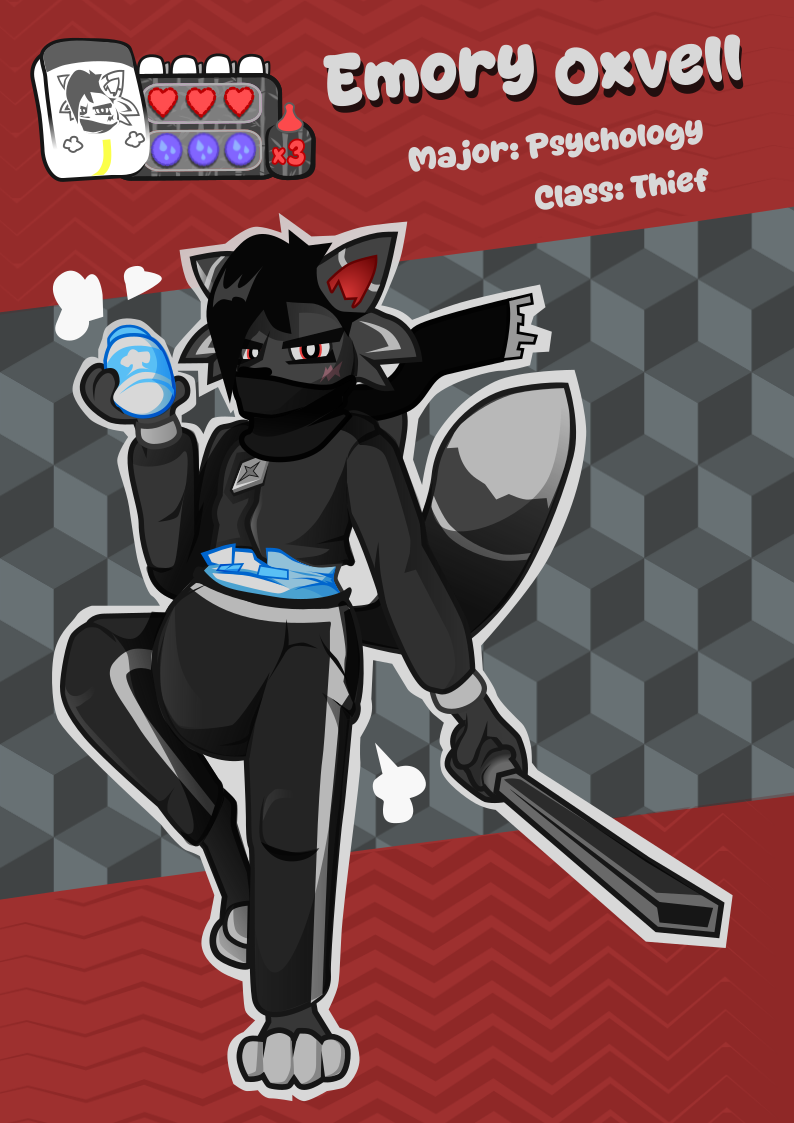 Character card for Emory Oxvell. A character for a game idea that I'm currently work on! No name for it yet, but I'm having a lot of fun making the characters for the game.