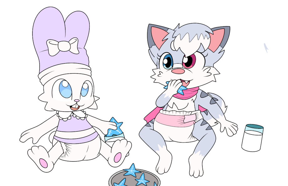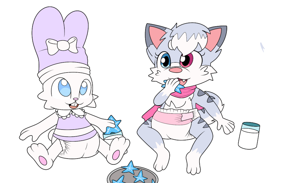 Snowy & Winter Enjoying some Snowflake Cookies together along with a glass of milk for each of them.
