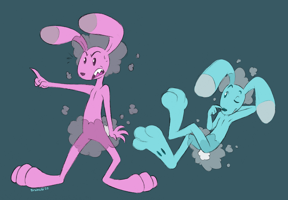 Re: the last upload: Dusty (purple) and Gummo (blue), aka "The Vicious Dustbunnies".