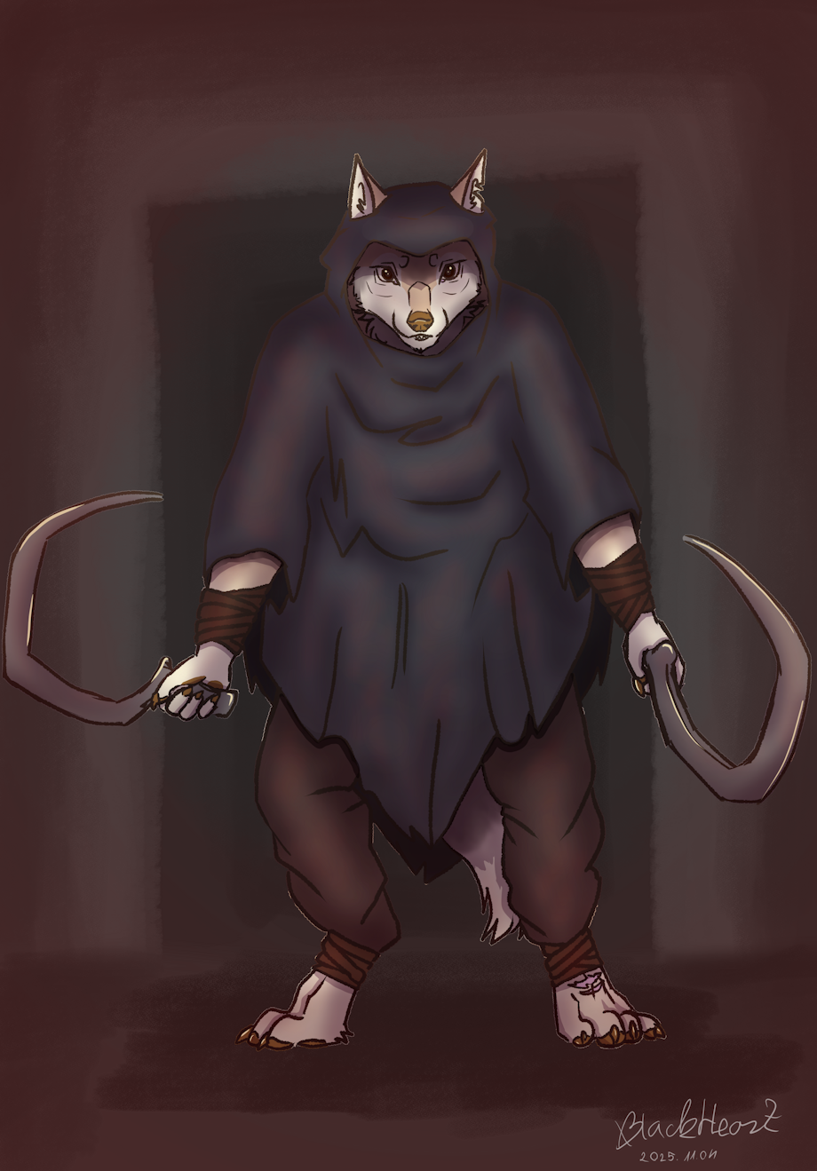 Just finished this small sketchy art for halloween (kinda late eee) with my soulmate's character, Fenrir cosplaying Death from Puss in boots!